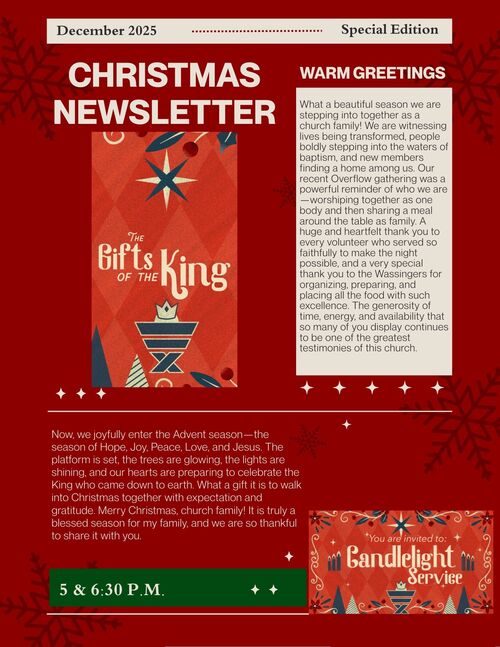 Last thing: Family Sunday, December 28 at 11am ONLY! On the Sunday after Christmas, we’re having one combined service at 11am. No early service, no classes—just one big family gathering. We will still offer nursery for babies through 4yrs of age. Our staff and worship team have been praying and planning something fresh and powerful that we believe will honor God and stir our faith as we head into a new year. Bring the kids, the pajamas if you want, and come expecting God to meet us.